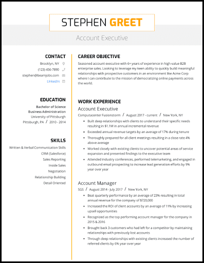 Resume structure and content may depend on the field for which you are applying. Download sample resume templates in pdf, word formats. Professionally written and designed resume samples and resume examples. Remember, if you have experience performing a. Use our free resume samples and land more job interviews. Find all types of job positions or industries in our collection. Check out our free resume samples for inspiration. Follow these resume examples and resume tips and you'll line up interviews for your next account executive role in no time. 7200+ professional resume examples & samples. Our resume examples are written by certified resume writers and is a great representation of what hiring managers are looking for in a saas implementation specialist resume. Dedicated software support specialist i with 11 years of experience, motivated to maintain customer satisfaction and. Choose the right resume type 100+ free resume examples Applying for jobs can be demoralizing.